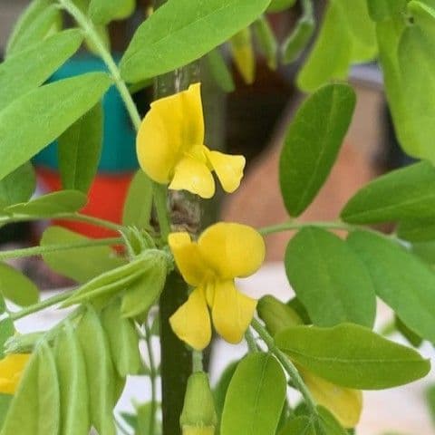 This dwarf tree has small leaves and yellow pea-like flowers in summer.
