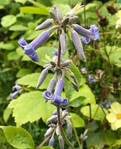 Beautiful powder blue bell flower herbaceous clematis. Growing quite vigorously through shrubs will give a wonderful display in late summer.