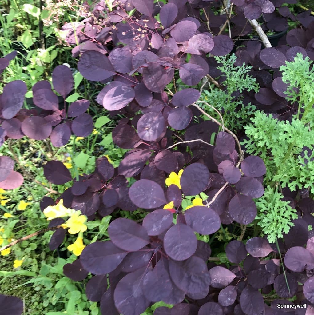 Dark purple foliage all summer with influorescences that look like plumes of smoke, hence the name. Prune to shape as required. Naturally grows into a medium sized round bush. Hardy & easy.