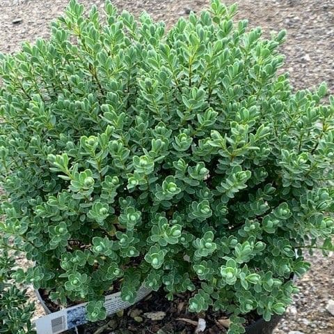 Small mound of glaucous foliage. White flowers in late spring. Although not their favourite food, deer will eat anything if they are hungry enough. Hebe toparia should make a mound of 90cmx90cms.