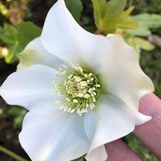White flowers with pink speckles during November to April depending on the weather. This choice perennial prefers rich, moist but well-drained soil in semi-shade. This winter-flowering perennial is semi-evergreen; as the flowers die back, new foliage emerges and remains until the next season's flowers start to appear. Ht 30-40cms when in flower.