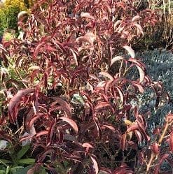 Medium sized semi-evergreen shrub. Panicles of creamy scented flowers in early summer. Dark green textured leaves flushed pink. Red fruit in autumn. Thrives on any fertile well-drained soil. Hardy and easy. Foliage colours up well in autumn.